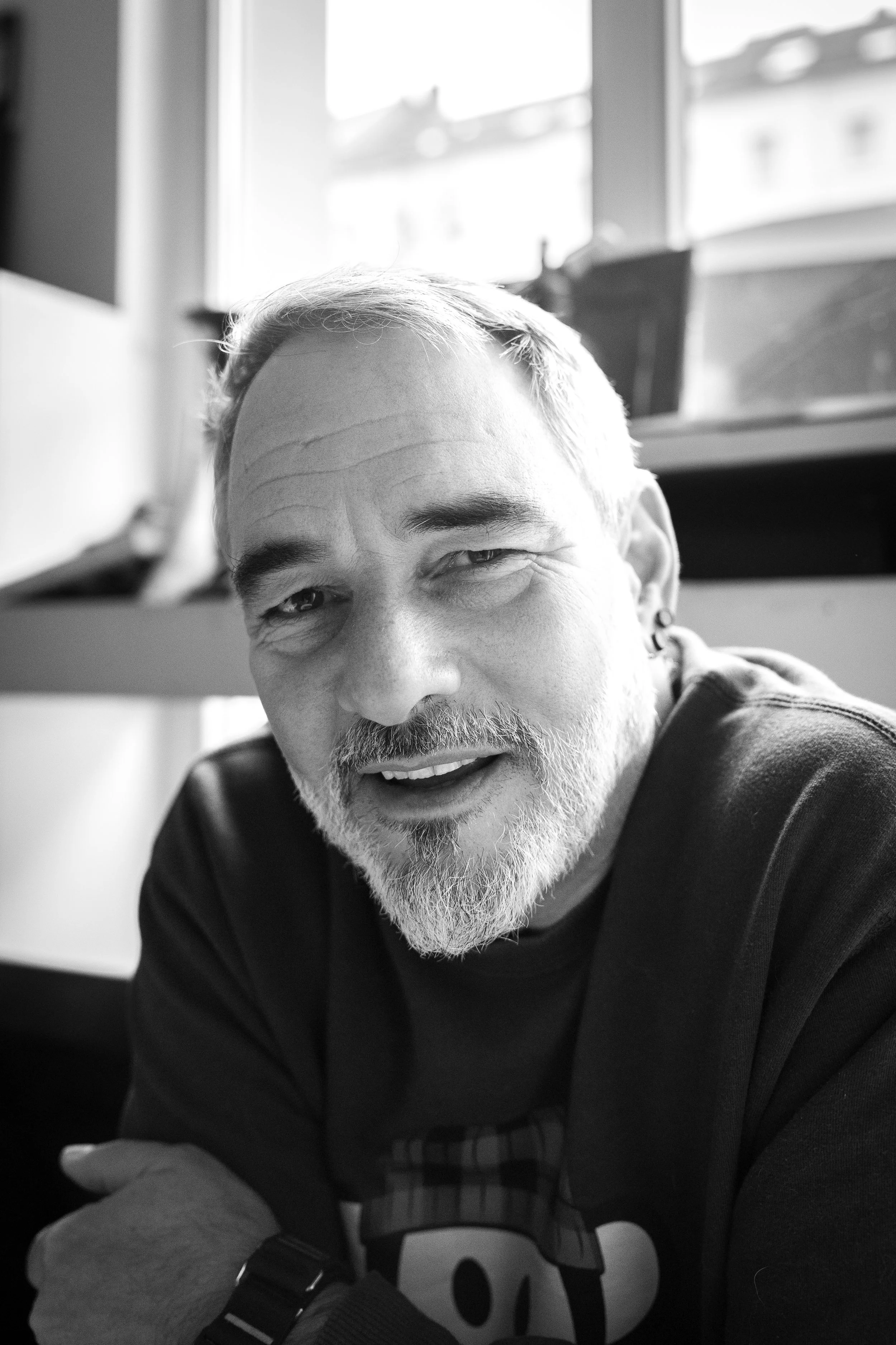 Years later, I would meet Mario again. We would sit in a book cafe in Berlin, I would take his portrait, and I too would have survived the unsurvivable. His face now weathered by thousands of kilometres on foot, his eyes carrying both the weight of loss and an unmistakable spark of purpose. A German journalist who sold everything he owned, packed a custom hiking wagon with 100 kilograms of gear and set out to walk around the world with his dog Tyrion, planting dozens of trees for suicide victims along the way.